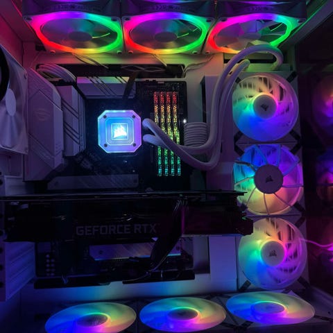 Selger en kraftig og stilren gaming-PC med EVGA RTX 3080 og Intel i7-prosessor.