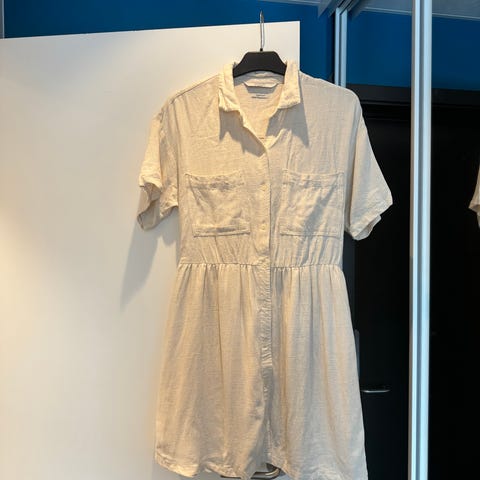Ytterkjole i " loose fit" Linmateriale har knyting i skulderparti( se bilde) passform /høyde kan justeres noe.