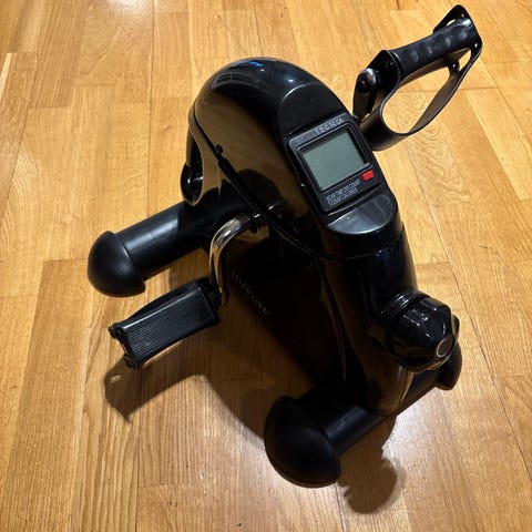 tredemølle med digitalt display som viser tid, hastighet, distanse, kaloriforbruk og puls. Utstyrt med flere treningsprogrammer og justerbar hastighet. Solid konstruksjon med håndtak for sikkerhet og støtte under trening.