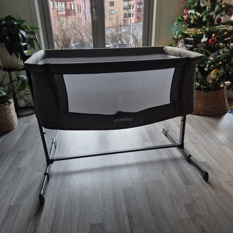 Moweo Bedside crib barneseng med ekstra madrass fra yngri. Selges da vårt barn har vokst ut av den. Brukt med madrassbeskytter og fremstår som lite brukt.