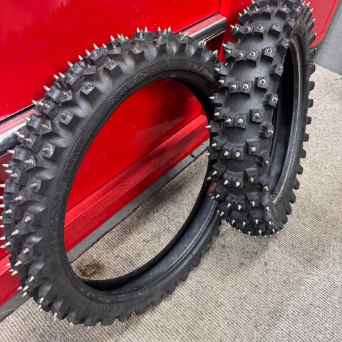 Jeg kjøpte dette veldig fine piggdekket fra det svenske selskapet Motorway på slutten av fjoråret, men de sendte meg feil størrelse.