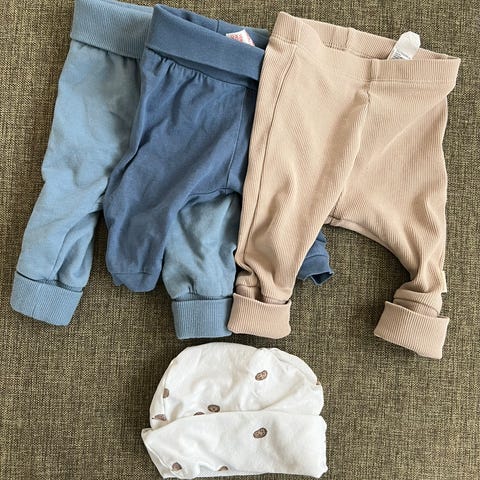 en stor pakke med klær i størrelse 50/56