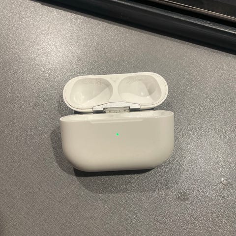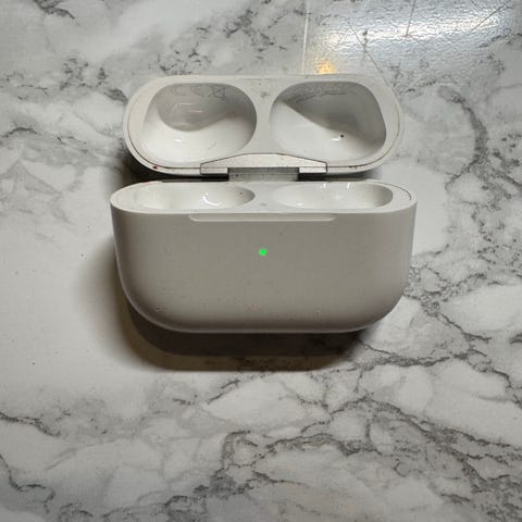 Selger et brukt men fullt funksjonelt ladeetui til AirPods Pro 2 (USB-C). Da det er hvitt fremstår det som alle brukte AirPods som slitt. Se bildet for bruksmerker.