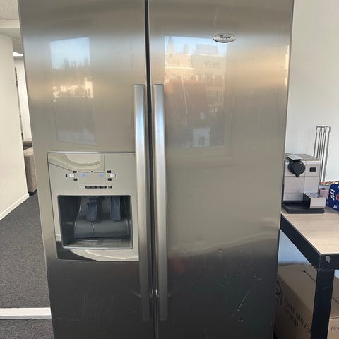 Men ellers et helt topp kjøleskap med vanndispenser og fryseskuff.
