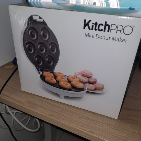 Selger en Emerio Mini Donut Maker da den ikke blir brukt. Lager 7 små Douts på få minutter.