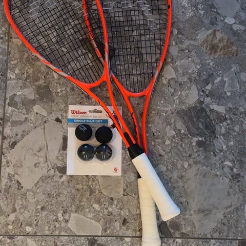 Head Cyclone 145 squashracket i blå farge. Racketen har et grafittmateriale og er designet for bruk i squashspill. Nesten ikke brukt. I veldig god stand.