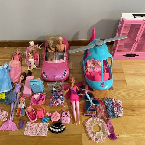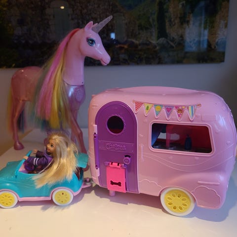 Barbie lekesett med campingbuss, klesskap dukker og tilbehør