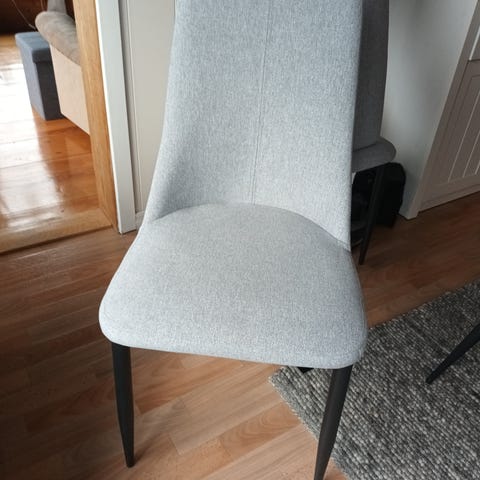 Det er noen av stolene som er litt slitt, én har et hull i setet etter en uheldig fyrstikk-episode. Stolene er helt OK og kan fint brukes lenge enda.