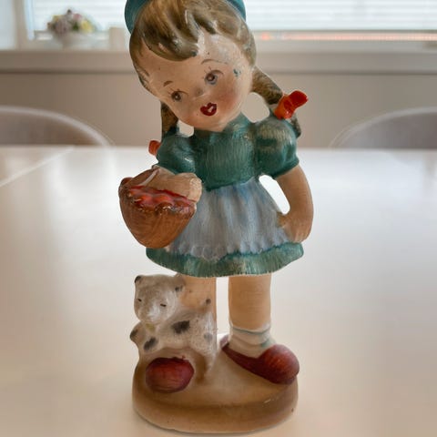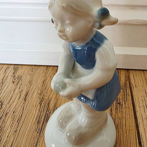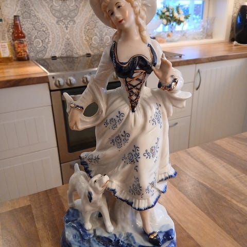 Figur i porselen med jente og hund