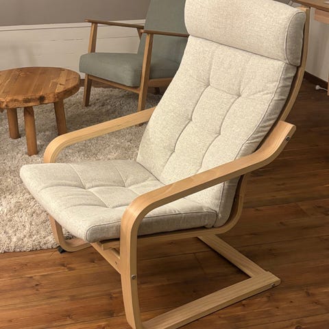 Pent brukt uten noen særlig bruksmerker. Ligner på Poäng, men ser ut til å ha noen andre armlener. Eller veldig like i form og størrelse.