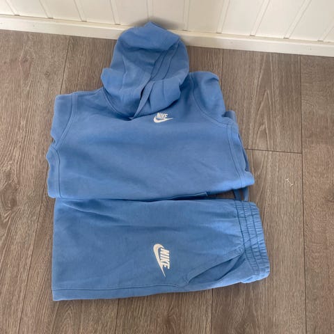 Nike genser i størrelse 150-178 cm for gutt, laget av bomull. Genseren har grå farge og en enkel design med logo på brystet.