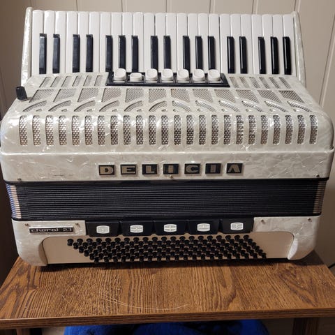 Slivestrini Mondolfo selges. Kjøpt på bruktbutikk en gang i tiden. TIlstand er ukjent, men høres ut som at det spiller greit. Har sine kosmetiske skavanker som vises på bilder. Må nok tas en overhaling/stemming. Kan sendes på kjøpers regning.