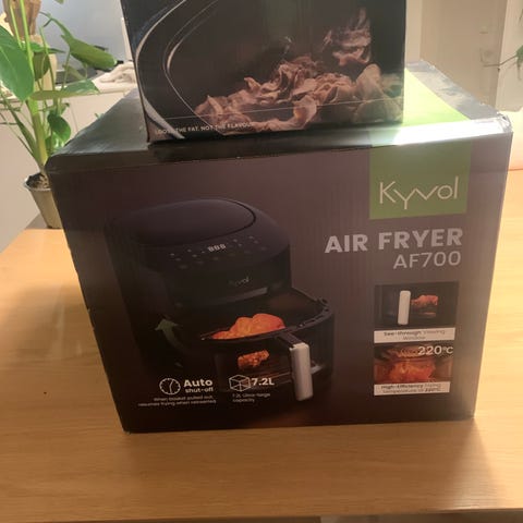Pent brukt airfryer fra Russell Hobbs. Fungerer som den skal og er enkel å bruke. Perfekt til pommes frites, kylling, grønnsaker m.m. Tar liten plass på kjøkkenbenken.