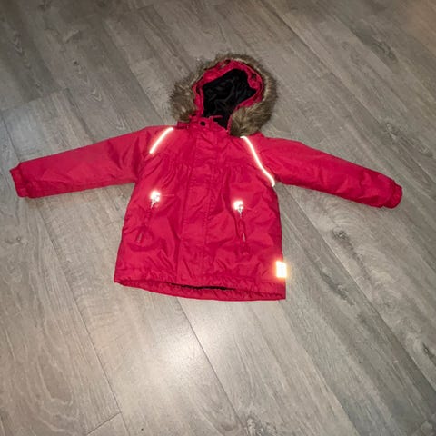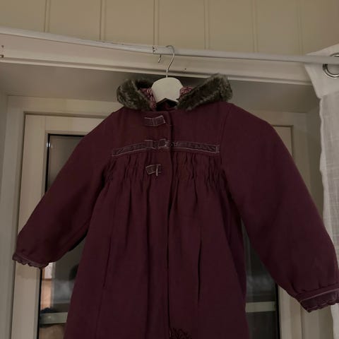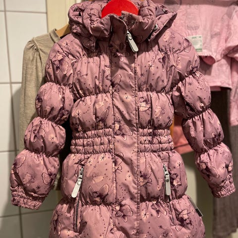 Pent brukt uten synlig slitasje eller hull. God og varm og perfekt til et barn som liker rosa og pynte seg. Den er og litt lengre, som var helt gull.