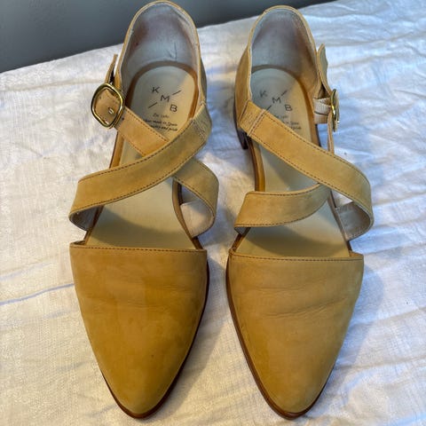 KMB skoletter beige semsket skinn med strikk i siden og kraftige såler