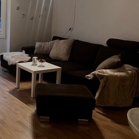 Veldig godt brukt sofa, en side som er lappet! Veldig stor sofa, plass til mange, myk og behagelig. Må hentes i 4. etasje uten heis, mulighet for hjelp til å bære ned. Pris fra 100kr til gratis. Super fin for kollektiv