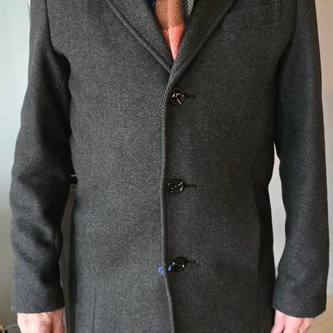 ullfrakk fra Cycle str L. Har en skade i fòret på innsiden øverst,se foto,ellers pent brukt - tilstand som på bilde. 70% ull.