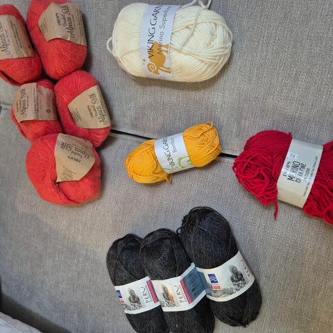 3 hele nøster og 1 som har tatt litt av. Samme partinr. Totalt er det ca190 gr.