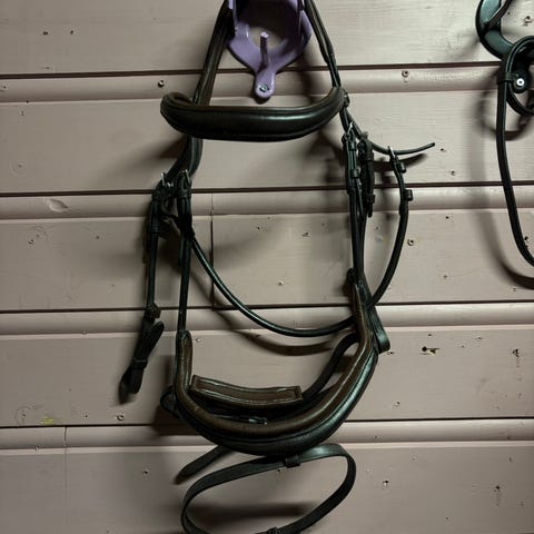 Anatomisk hodelag i str cob selges da det blir for liten til nåværende hest. Hodelaget har ligget i skapet mitt i en god stund uten å ha blitt brukt, så noe av læret er litt stivt, men jeg skal behandle, rengjøre og pusse hodelaget godt før salg! Så hodelaget blir som nytt!😁