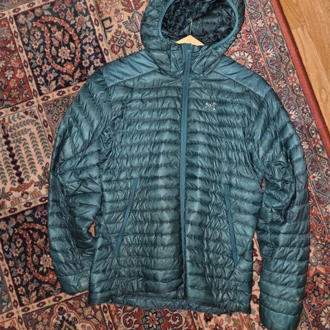 Arc'teryx Cerium LT Hood dunjakke i størrelse L, Fin blå farge. Jakken har hette og veldig lett med fin passform. Kun brukt en håndfull ganger. Normal i størrelse. Kjøpt for 4500,- Selges da jeg har 2 stk.
