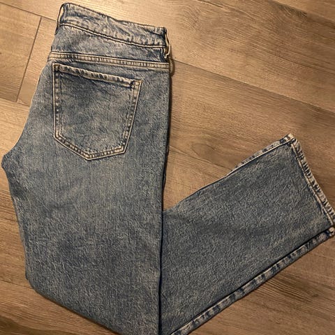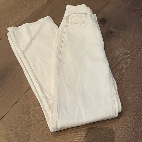 Wide leg i str 36 med hull, selges da den har en blå liten flekk (se siste bilde)