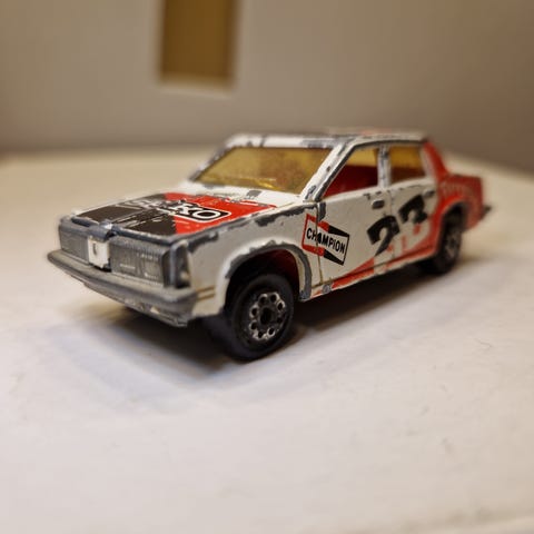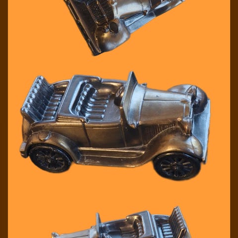 Neppe laget på 50-tallet, men en pen 50-tallsbil i metall. En gammel repro? Seter i plast. Det den mangler av deler har delebilen. Så denne kan det bli noe skikkelig av. Trolig en Buick fra ca 1950? #modellbil #amcar #buick