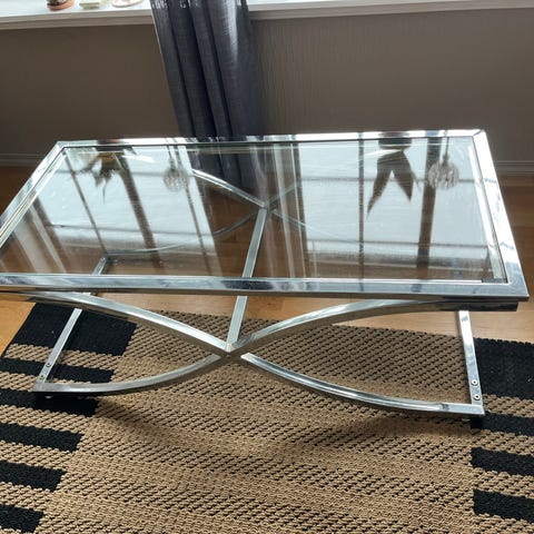 stort glassbord og tre små glassbord som et sett.