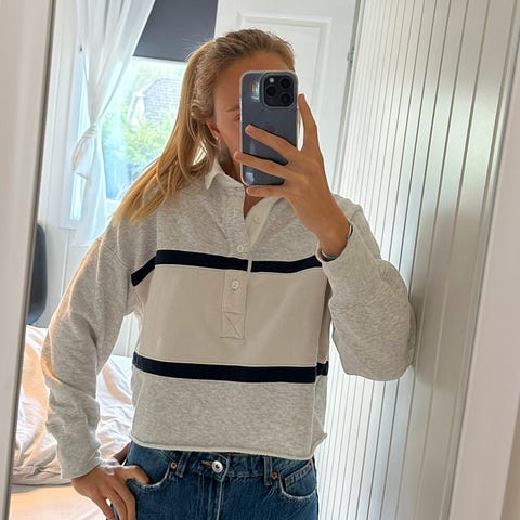 Genser fra Abercrombie & Fitch. Selges da den ikke brukes lenger, str S, selges billig da den har en flekk foran på magen. Synes ikke veldig godt, går sikkert an å få den bort, har ikke prøvd annet enn å vaske den vanlig.