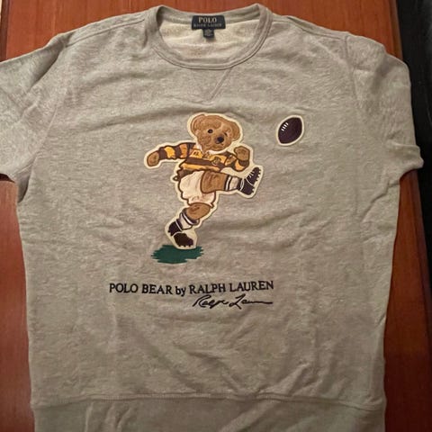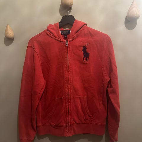 Pent brukt Polo Ralph Lauren grå hettejakke merket str L (14-16). Synes disse generelt