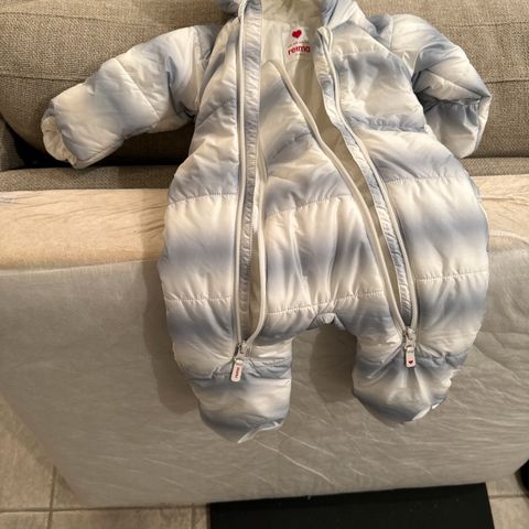 Reima barnedress i størrelse 62, hvit farge, laget av polyester. Passer for både gutter og jenter. Dressen har hette og glidelås, med elastiske mansjetter ved armer og ben for bedre passform. Med refleks på (se bilde 12)! Tatt av etikett, aldri brukt. Veldig god kvalitet.