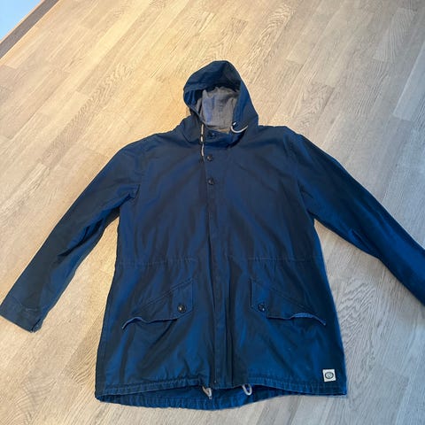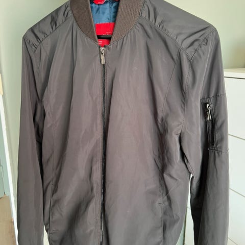 Zara jakke i størrelse M, laget av bomull. Jakken har grønn farge og er designet for menn. Den er foret og har polyester innside. Pelskragen er kneppet og kan tas av. Jakken er brukt noen få ganger, og framstår som ny.