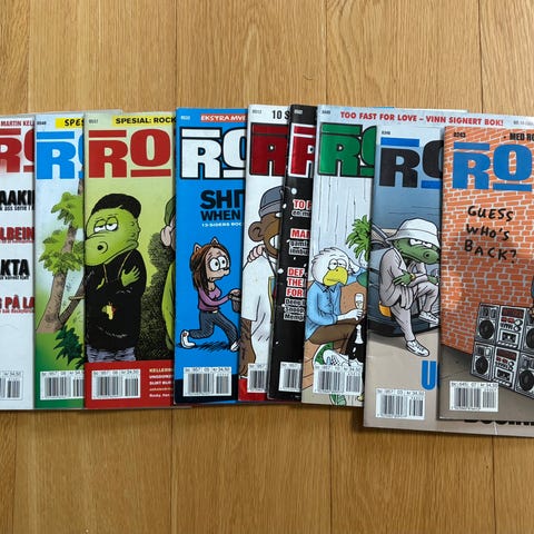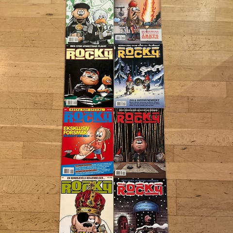 Rocky tegneserieblader, totalt 17 utgaver med varierende omslagsillustrasjoner. Serien inneholder humoristiske og satiriske historier, utgitt i norsk språkdrakt.