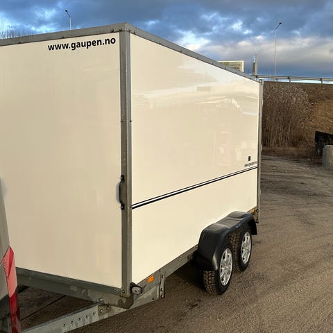 Stor isolert boggihenger mål innvendig L 4,1 B 2 H 2,1. Det som er inni blir fjernet. Reg nr CB 5814.