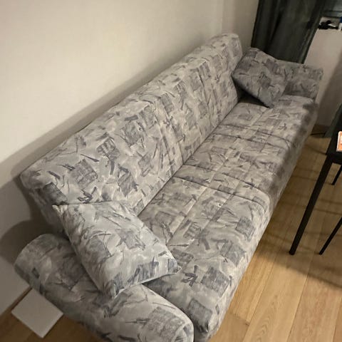 Pent brukt sovesofa selges. Sjeselong har oppbevaring. Enkelt å gjøre om fra sofa til sovesofa. 215 bred og 80cm dyp som sofa, og 145 dyp som seng. Må hentes.