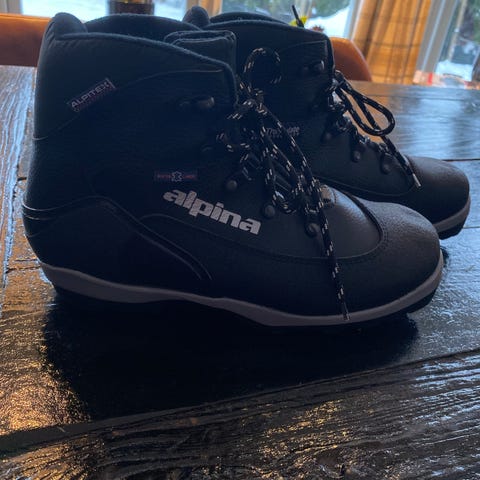 Alpina T20 skisko for herre i størrelse 45. Skoene er svarte og designet for bruk i vinterforhold med god støtte og slitesterk konstruksjon.