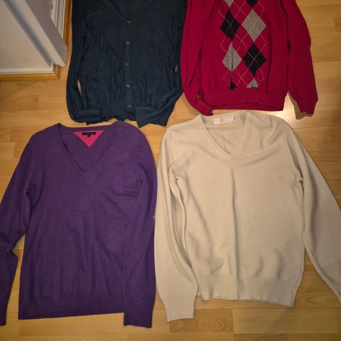 Hei! Jeg selger 5 gensere 1 fra J.L Indeberg og 4 fra gant. Disse er i størrelse M/L men passer nok best en gutt som er medium. Kontakt meg hvis du har noen spørsmål! Pris kan diskuteres
