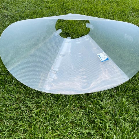 beskyttelses krage str M med myk kant på begge sider. 18 cm høy, og kan justeres fra 36-43cm