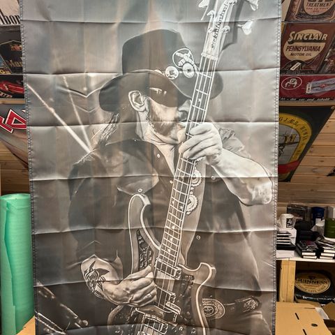 Dødsfett Motorhead, Lemmy musikkbanner selges. Ca. 90x60 cm. Laget i polyester. Bør strykes da det har ligget nedpakket. Kjøper tar frakt.