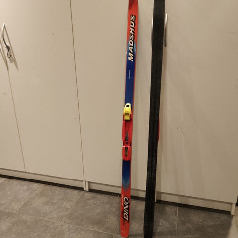 Leki staver i metall med håndtak og stropper. Brukes til gåing eller fotturer for støtte og balanse.