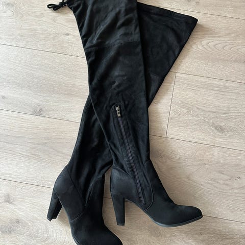 Svarte semskete over the knee boots fra Aldo, med lav hel.