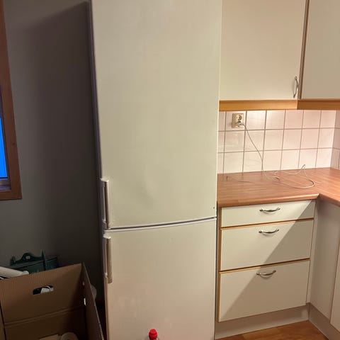 Whirlpool kombiskap i hvit farge. Kjøleskap og fryser i ett apparat. Høyden 220cm. Brydde 58cm. Dybden 63cm fungerer som den skal