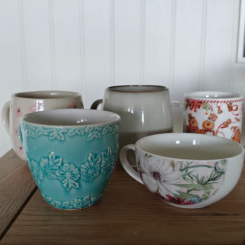 Kaffekopper 26 cl, 11 stk med Skål, i god stand uten skår. Må hentes.