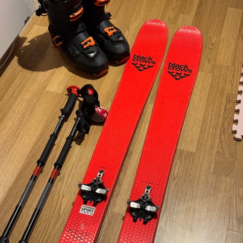 RMU ski med lengde 175cm. De står marker alpinist bindinger på skiene og kohla vacum base feller. Vacum basen er blir relativt dårlig i limen so ville ha smurt ny lim på dei. Sko er i str 27,5 følger med intuition liner og orginal liner.