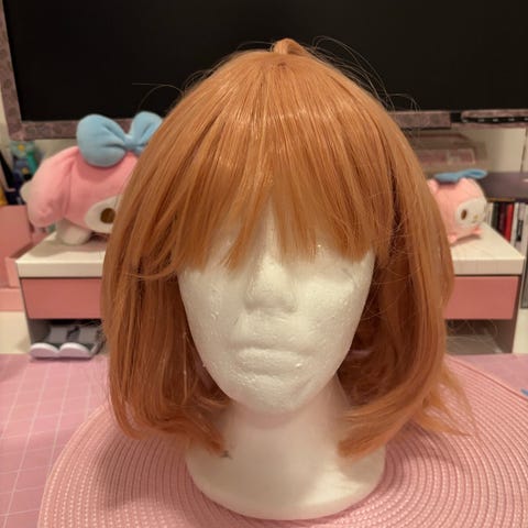 Selger denne korte blonde parykken. Ble brukt til cosplay