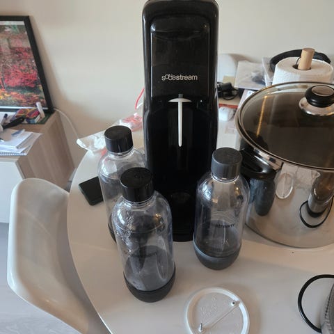 Sodastream Terra Gigapack kullsyremaskin svart med flasker og CO2-sylinder
