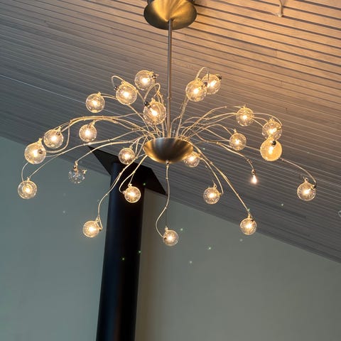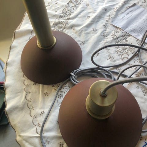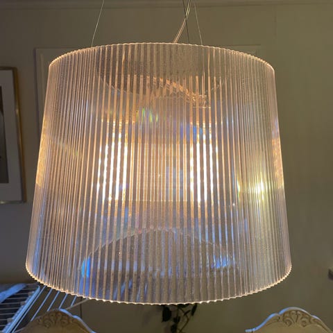 Moderne designklassiker i blå akryl. Ubrukte pærer følger med.