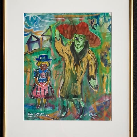 Oljemaleri med tittel "Mor Courage".