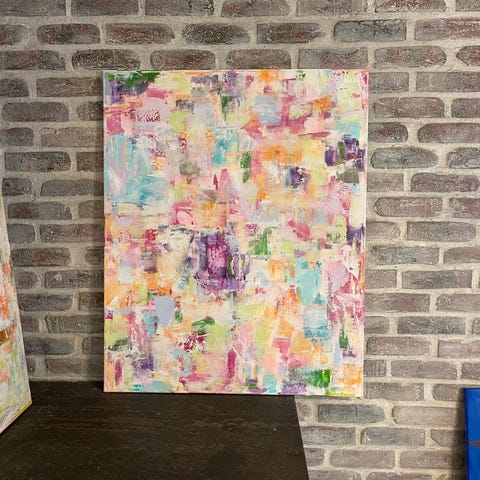 Abstrakt maleri som veggdekorasjon med fargerik design. Passer til dekorering av stue eller andre rom for å tilføre kunstnerisk uttrykk.