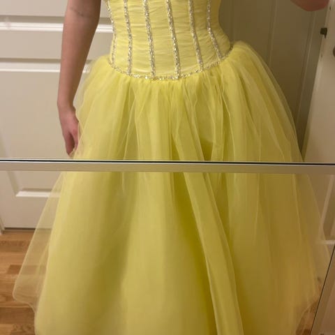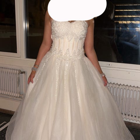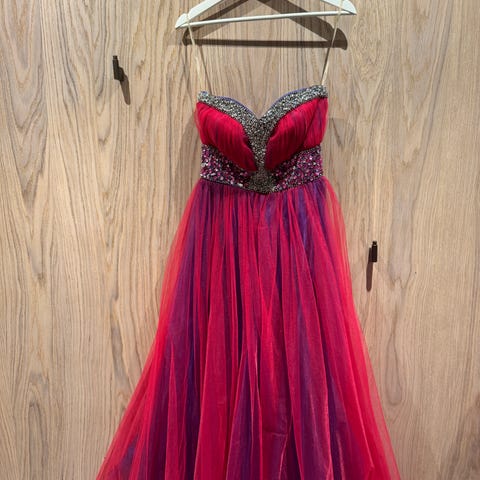 Selger denne nydelige ballkjolen! Det er kunn blit brukt 1 gang, nemlig skoleballet i 10 klasse. Kjolen kan strammes og justeres bak:) Den er størrelse 34 som tilsvarer xs/s men den kan som sagt justeres bak!
