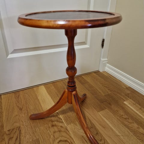 Stolen er hel og stødig, med normal bruksslitasje som gir den sjarm og karakter. Komfortabel sittepute og solid håndverk.